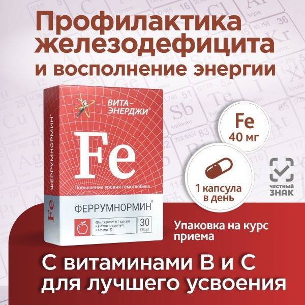 Ferrumnormine Vita-Energy is a superior iron supplement formulated to combat iron deficiency and boost energy levels. This comprehensive complex combines iron with Vitamin C and a full spectrum of B vitamins (B1, B2, B3, B5, B6) for optimal absorption and utilization.