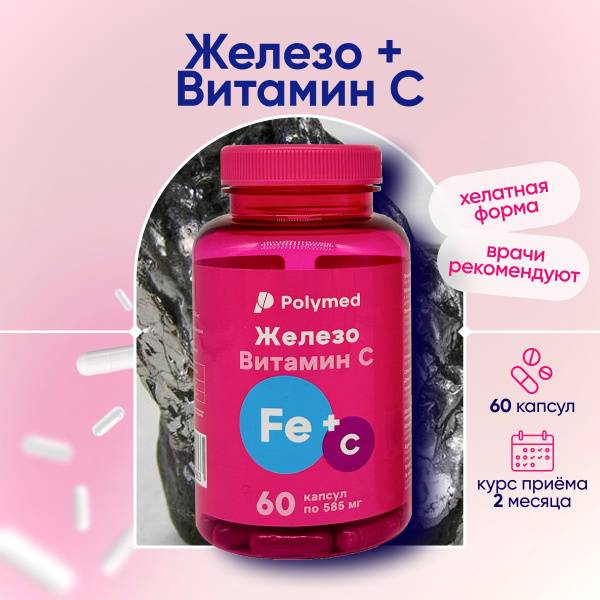 Keywords: Iron supplement, vitamin C supplement, iron deficiency, hemoglobin, energy boost, immune support, chelated iron, Polymed, vitamins for women, vitamins for men, dietary supplement, health supplement, family health, clinical expertise, maximum absorption.