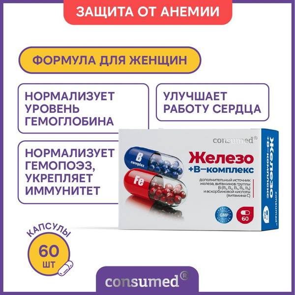 This comprehensive iron and vitamin complex restores energy balance and supports overall well-being. For women, it helps normalize hemoglobin levels and improve well-being during menstruation. For men, it combats fatigue from physical exertion by increasing oxygen delivery to tissues and improving blood circulation.