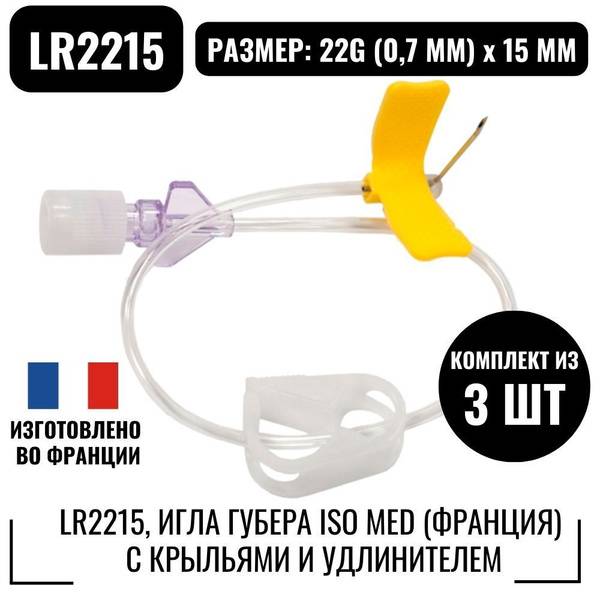 ISO Med (France) Huber needles with wings (butterfly needles) and extension provide reliable access to implanted port systems. These 22G needles are designed for prolonged infusions (up to 72 hours) of pain medication, chemotherapy drugs, intravenous nutrition, and blood products. The unique Huber needle tip design ensures easy insertion and extends the lifespan of the port membrane. Unlike silicone-coated needles, these needles minimize the risk of needle dislodgement.