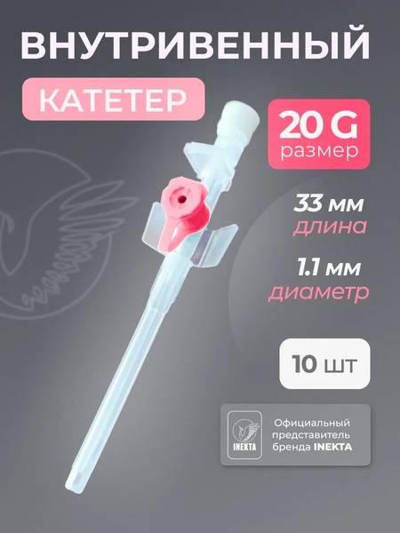 Mediflon 20G Peripheral IV Catheters offer reliable vascular access for fluid and medication administration, and blood sampling. This 10-pack features catheters with an injection port and secure fixation. Each catheter boasts a 20G size (1.1 mm +/- 0.05 mm outer diameter), 33 mm length, and a flow rate of 61 ml/min. The pink color-coded hub ensures easy size identification.