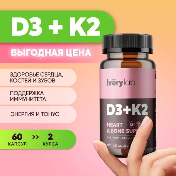 Boost your bone, heart, and immune health with Iverylab's Vitamin D3 & K2 2000 IU supplement. This powerful combination harnesses the benefits of sunshine Vitamin D3 (cholecalciferol) and Vitamin K2 (menaquinone) for comprehensive wellness. Vitamin D3 plays a crucial role in supporting a healthy immune system, cardiovascular function, nervous system, and energy levels. Vitamin K2 is essential for calcium absorption, promoting strong bones and teeth, while also supporting healthy blood vessels and cognitive function. Together, they create a synergistic effect, enhancing calcium utilization and bolstering your body's natural defenses. Manufactured to European standards, Iverylab's Vitamin D3 & K2 is safe and suitable for both men and women. Each bottle contains 60 capsules, providing two full courses of treatment. One capsule provides 2000 IU of Vitamin D3 and 30 mcg of Vitamin K2. Experience the Iverylab difference. Find more Iverylab vitamins and supplements by searching "Iverylab," "vitamin D3 adult," or "vitamin D3."