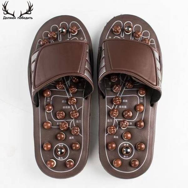 Indulge your feet with our premium Jade Reflexology Slippers. These innovative slippers are designed to deliver a deep, invigorating massage that targets key reflexology points on your feet. Each slipper boasts 41 spring-loaded massaging buttons of varying shapes and firmness, providing a customized massage experience. These buttons rotate within their housings for enhanced stimulation. For an added therapeutic touch, two buttons on each slipper incorporate genuine jade inserts, known for their cooling and healing properties.