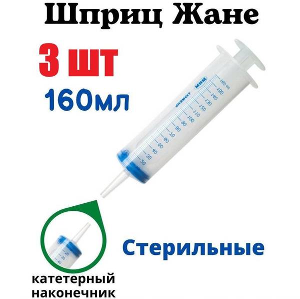Description: This 150ml three-component Jané syringe features a catheter tip and a smooth piston action thanks to a rubber piston seal. The transparent, hermetically sealed cylinder is marked with an indelible scale up to 160ml. An ergonomically designed, textured finger grip ensures secure handling. Sterile, non-toxic, single-use blister packaging provides clear visibility of the syringe before opening, guaranteeing its integrity. A specially designed rubber seal ensures complete medication delivery. Apyrogenic and non-toxic, this medical-grade syringe is ideal for a variety of applications including irrigation, gastrostomy feeding, lubrication, and even culinary or automotive uses. The Jané 150ml syringe is perfect for patient cavity irrigation, enteral feeding, and administering solutions, nutrients, or medications via catheter and tube. Suitable for intravenous, intraperitoneal, and intratracheal infusions, and fluid aspiration. Conforms to: GOST R 52770-2007, GOST ISO 7886-1-2011, GOST ISO 7864-2011, GOST ISO 8537-2011, and GOST R ISO 10993-100 series standards. Bulk pack of 3 syringes.