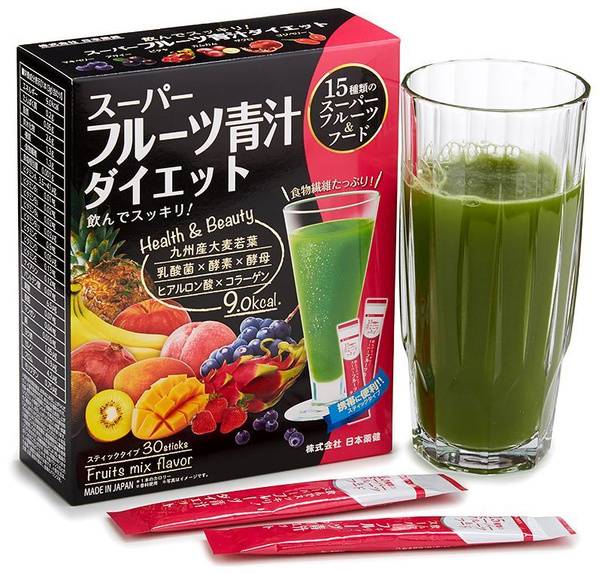 Aodzuru, Nihon-Yakken, Japanese superfood drink, collagen, vitamin drink, mineral drink, young barley sprouts, immune support, cardiovascular health, skin health, energy boost, anti-aging, weight management, diabetes support, blood pressure support, healthy metabolism, inflammation reduction, cancer prevention, Japanese health supplement, 30 sachets, health benefits, natural supplement.