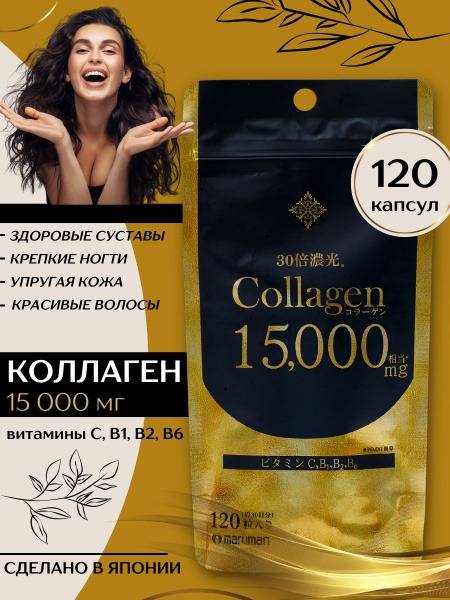 Experience the transformative power of Maruman Japanese Collagen, a 30-day supply of premium collagen capsules boasting 15,000mg of modified fish collagen per serving. This superior formula contains 30 times more proline-hydroxyproline and hydroxyprolyl glycine peptides than ordinary collagen, ensuring superior absorption and effectiveness. Enriched with Vitamins C, B1, B2, and B6 for enhanced collagen synthesis and overall well-being, Maruman Collagen supports: