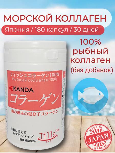 Japanese Marine Collagen Peptides for Joints, Skin, Hair - Kanda Tilla Caps (180 ct / 1 Month Supply)