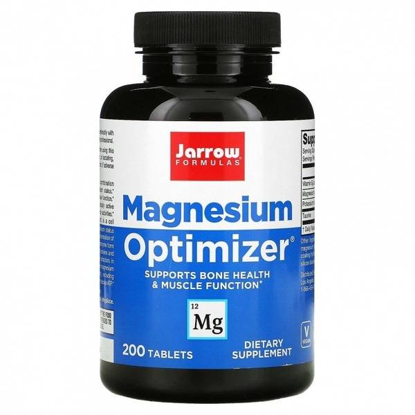 Jarrow Formulas Magnesium Optimizer is a synergistic blend of nutrients designed to enhance magnesium metabolism. Magnesium is crucial for nerve and muscle function, and athletes often benefit from its electrolyte-balancing properties alongside potassium. This formula includes taurine, a free-form amino acid antioxidant and cell membrane stabilizer that boosts magnesium and potassium absorption through osmolarity regulation. Pyridoxal-5-phosphate (P-5-P), the active coenzyme form of vitamin B6, is essential for protein and amino acid metabolism, further supporting magnesium's function. Together, magnesium and vitamin B6 act as cofactors in numerous enzymatic systems, including ATP synthesis, supporting central nervous system biochemistry.