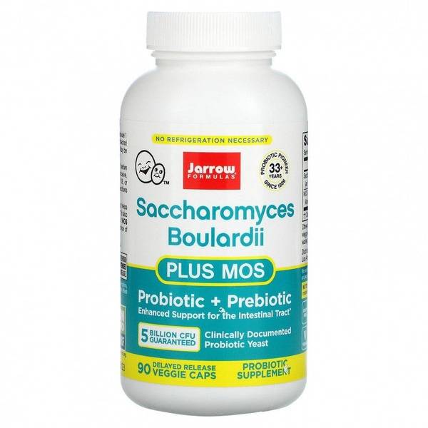 Description: Support your gut health with Jarrow Formulas Saccharomyces Boulardii + MOS. This powerful probiotic formula combines 5 billion CFU of Saccharomyces boulardii yeast with MOS (mannooligosaccharides), a prebiotic that promotes a healthy gut microbiome balance. Saccharomyces boulardii helps protect and maintain intestinal flora, while MOS supports the elimination of undesirable bacteria. Experience the benefits of this high-potency, vegetarian, delayed-release supplement for optimal digestive health.