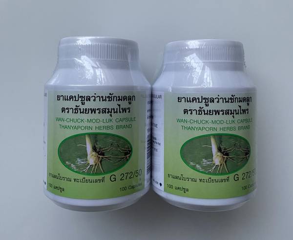 Experience relief from menstrual cramps and support your reproductive health with Wan Chuck Mod Luk Javanese Turmeric capsules. These potent capsules help regulate menstrual cycles, reduce inflammation in the uterus and ovaries, and may aid in preventing candidiasis, bacterial vaginosis, and colpitis. Discover potential benefits including improved skin, hair, and nail health, along with antioxidant and anti-aging effects. Support your overall well-being and fertility journey.