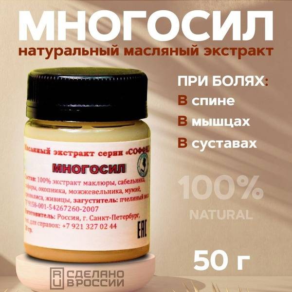 Keywords: joint pain relief, ligament balm, arthritis cream, osteoarthritis treatment, natural pain relief, back pain relief, rheumatism relief, muscle pain relief, sports injury recovery, natural ingredients, maclura, burdock, sophora, comfrey, juniper, mumiyo, propolis, beeswax, 50g balm, Multisil, Sophid, vitamin C cream, body cream, massage balm, dry skin treatment, cracked skin repair.