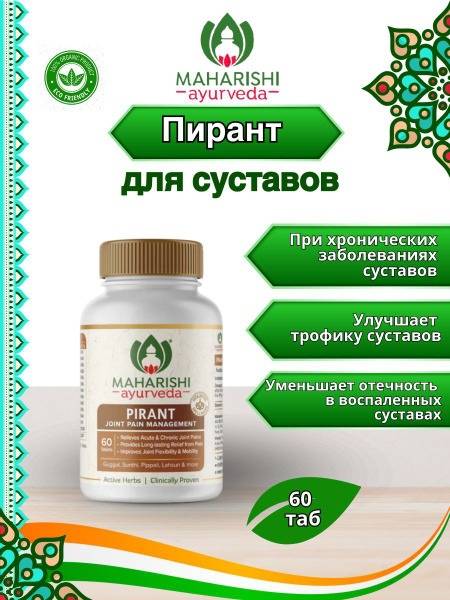 Pirant, a Maharishi Ayurveda formulation, provides potent anti-inflammatory, anti-edema, and analgesic effects, improving joint nutrition. It's effectively used in the comprehensive treatment of acute and chronic degenerative joint and spinal diseases, including osteoarthritis, arthritis, osteochondrosis, and arthrosis. Pirant prevents sclerotic changes in the joints, improves microcirculation, strengthens the immune system, and aids in urate excretion. Containing natural ingredients, it strengthens synovial membranes and nourishes cartilage, improving joint surface condition, reducing swelling, increasing mobility, and lessening pain and stiffness. By neutralizing Ama (toxins, according to Ayurvedic principles), a primary cause of joint inflammation and pain, Pirant offers relief without the gastrointestinal or ulcerative side effects often associated with conventional treatments. Benefits include effectively eliminating acute and chronic inflammation in joints and muscles; relieving pain from sciatica, gout, and arthritis; reducing morning joint stiffness; preventing sclerotic joint changes; assisting in urate excretion; strengthening synovial membranes and cartilage; neutralizing toxins; boosting the immune system; and relaxing muscles and reducing swelling in inflamed joint areas. Indicated for the prevention of joint inflammation, rheumatoid arthritis, gout, osteoarthritis, sciatica, ligament sprains, and as an adjunct therapy with NSAIDs.
