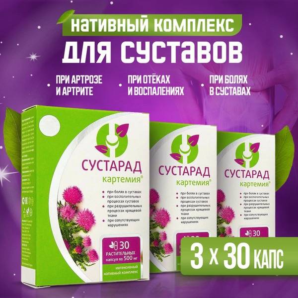 This complex helps prevent cartilage malnutrition in young adults and prevents further degenerative cartilage changes and the development of osteoarthritis and related diseases. Sustarad Cartemia enhances the action of capsule components that combat the infectious destruction of cartilage. It addresses the causes and consequences of all types of infectious specific arthritis (tuberculous, brucellar, gonorrheal, syphilitic, dysenteric, pneumococcal, viral, septic, fungal), as well as psoriatic polyarthritis (psoriatic arthritis).