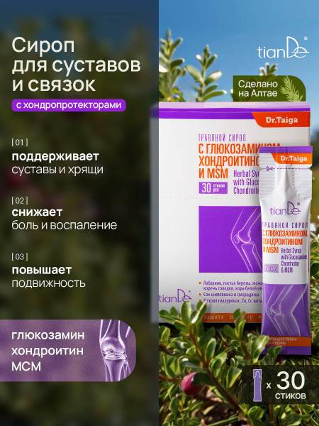 Experience joint discomfort, stiffness, or reduced mobility? TianDe Joint Support Syrup offers natural relief. This herbal syrup, rich in Glucosamine (700mg), Chondroitin (600mg), and MSM (240mg), supports cartilage regeneration and joint health. Its powerful formula also includes Hyaluronic Acid, Vitamin C, Zinc, Chromium, and a blend of beneficial herbs (Filipendula ulmaria, Betula leaves, Juniper, Licorice, White Willow bark) to reduce inflammation, improve mobility, and protect your joints. Enhanced with rosehip and blackcurrant juices, this supplement is ideal for athletes, seniors, and anyone seeking joint support. Address age-related wear and tear, injuries, or lifestyle factors impacting joint health. Nourish your joints and regain your active lifestyle with TianDe. *Percentages based on recommended daily intake.