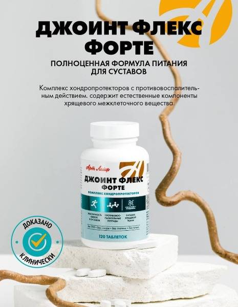 ArtLife Joint Flex Forte is a powerful chondroprotective supplement with anti-inflammatory action designed to support healthy joints and ligaments. Years of stress and strain take their toll on joints, often leading to cartilage breakdown, inflammation, and pain. Joint Flex Forte offers comprehensive support through a unique formulation. The innovative "Osteol" complex (containing specialized milk protein peptides) actively inhibits inflammation-causing enzymes and promotes cartilage regeneration. Combined with glucosamine and chondroitin, it significantly enhances the synthesis of essential cartilage components.