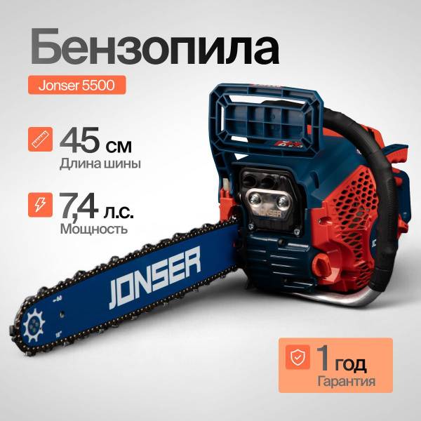 Jonser BS-5500 Chainsaw: Powerful 7.4 HP Gas-Powered Saw with 18" Bar
