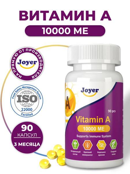 Support your vision, skin, and overall well-being with Joyer Vitamin A 10000 IU (Retinol) supplements. Vitamin A is crucial for eye health, aiding in the synthesis of rhodopsin for improved night vision and protecting against macular degeneration. For your skin, retinol promotes cell regeneration, reduces the appearance of wrinkles, combats acne, and acts as a powerful antioxidant. Beyond skin and eyes, Vitamin A contributes to healthy hair growth, supports endocrine and reproductive system function, and boosts immunity. Each bottle contains 90 high-potency capsules for optimal results. Experience the comprehensive benefits of this essential nutrient with Joyer.