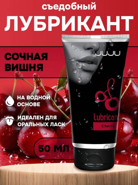 Enhance intimacy with JUJU's delectable edible lubricants. Available in a variety of tempting flavors including strawberry, raspberry, coconut, tropical fruits, cherry, and grapefruit, our water-based formulas provide long-lasting, silky smooth lubrication for any intimate encounter. Compatible with sex toys and condoms. Experience unparalleled pleasure and explore new sensations. This 50ml bottle of cherry-flavored lubricant contains purified water, saccharin, hydroxyethylcellulose, glycerin, ethylparaben, methylparaben, flavoring, and propylene glycol. Made in Russia by JuJu.