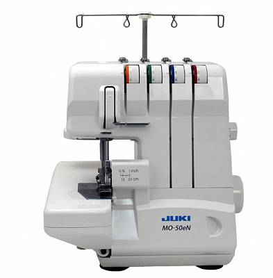 Juki MO-50eN, overlock machine, serger, 3-thread serger, 4-thread serger, overlock stitch, rolled hem, differential feed, sewing machine, industrial serger, professional serger, lay-in threading system, sewing supplies, heavy duty serger, fabric finishing, elastic stitch, flatlock stitch, Juki, sewing equipment