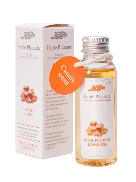 Description: Indulge in the sensual experience of Juleju "Triple Pleasure" French Caramel intimate elixir. This delectable edible lubricant enhances intimacy with its silky smooth texture and long-lasting glide. Experience a warming sensation as it responds to your touch and breath, creating an unforgettable moment of shared pleasure. Perfect for sensual massage and intimate encounters. Paraben-free and made with food-grade ingredients including glycerin, purified water, caramel flavoring, and natural colorings (CI19140, CI16255). Packaged in an attractive printed carton.