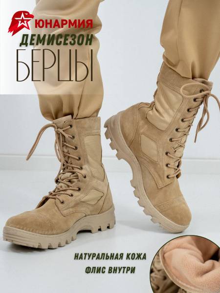 Keywords: Junarmiya boots, cadet boots, demi-season boots, suede boots, beige boots, non-slip boots, outdoor boots, hiking boots, comfortable boots, durable boots, quick lace boots, reinforced boots, patriotic organization boots, suvorov school boots, cadet school boots, Cordura boots, TPE sole, velour leather boots, fleece lined boots.