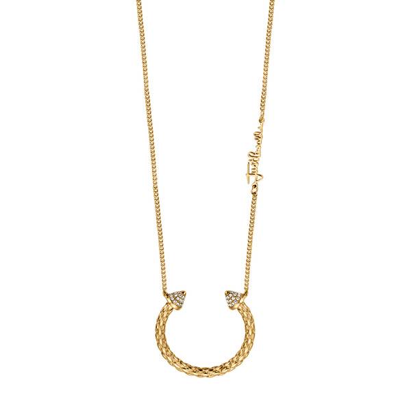Indulge in the captivating allure of the Just Cavalli JCNL00360200 necklace, a statement piece from the Relaxed collection. This exquisite 55cm necklace is crafted from hypoallergenic, nickel-free stainless steel with a luxurious yellow gold ion plating. The elegant chain features a striking pendant shaped like a large, unfinished circle—a stylized snake body—embellished with meticulously placed spikes, each inlaid with dazzling white crystals. The iconic Just Cavalli logo subtly underscores the piece's designer heritage and brand authenticity.