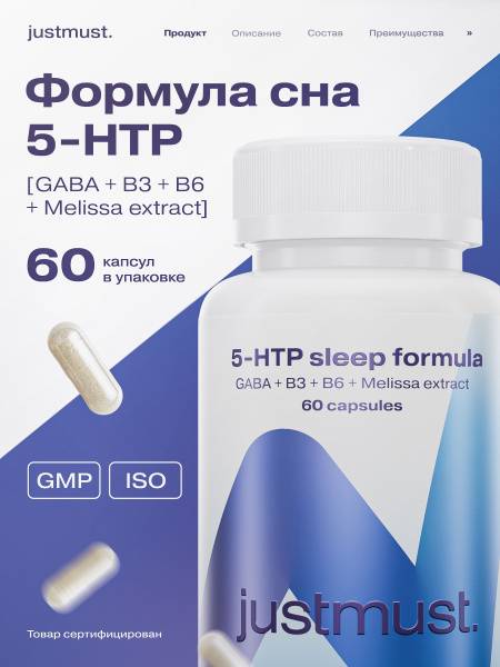 5-HTP, sleep formula, sleep aid, natural sleep aid, melatonin, serotonin, vitamin B3, vitamin B6, melissa extract, anxiety relief, mood booster, stress relief, sleep support, sleep supplement, dietary supplement, GABA, relaxation, muscle relaxation, blood vessel relaxation, weight management, non-habit forming, side effect free, men's health, women's health, improved sleep, better sleep, restful sleep, deep sleep, sleep quality, JUSTMUST