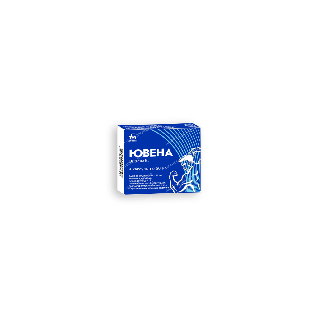 Name Juvena caps. Pharmacotherapeutic group Drug used for erectile dysfunction Pharmacological action Drug used for erectile dysfunction. Selective inhibitor of cGMP-specific phosphodiesterase type 5 (PDE 5), which is responsible for the breakdown of cGMP in the cavernous body of the penis. Actively enhances the relaxing effect of nitric oxide (NO) on the smooth muscles of the cavernous body and increases blood flow in the penis. When the NO-cGMP chain is activated, which is observed during sexual arousal, the inhibition of PDE 5 leads to an increase in cGMP in the cavernous body. The pharmacological effect is achieved only in the presence of sexual stimulation. Activity against PDE-5 is 10-10,000 times greater than activity against other PDE isoforms (1, 2, 3, 4, 6). Pharmacokinetics Absorption Tmax after oral administration, on an empty stomach, is 0.5-2 hours. Bioavailability is 25-60%. When taken with fatty foods, Cmax decreases by 20-40% and is reached after 1.5-3 hours. The distribution of Vd in the equilibrium state is 105 liters. Plasma protein binding - 96%. Metabolism Metabolized mainly by CYP3A4, CYP3A5, CYP3A7 (main route) and CYP2C9 (additional route) microsomal liver isoenzymes to form metabolites. The main circulating active metabolite is the N-desmethyl metabolite, whose activity is 50% of that of sildenafil. excretion Total clearance - 41 l / h. T1 / 2 of sildenafil and N-desmethylmetabolite - 3-5 hours. Excreted as inactive metabolites with feces (80%) and kidneys (15%). Pharmacokinetics in special clinical situations In patients with renal insufficiency (CC less than 30 ml / min), cirrhosis of the liver and in the elderly, the clearance of sildenafil is reduced. Overdose Data on overdose are not provided. Indications for use Erectile dysfunction of various etiologies (organic, psychogenic, mixed). Dosage and administration Inside adults, approximately 1 hour before the planned sexual activity. Single dose - 50 mg 1 time / day. Based on efficacy and tolerability, the dose may be increased to 100 mg or reduced to 25 mg. The maximum single dose is 100 mg. In patients with impaired liver or kidney function and in elderly patients, dose adjustment is not required. PrecautionsTo diagnose erectile dysfunction, determine their possible causes and select adequate treatment, it is necessary to take a complete medical history and conduct a thorough physical examination. Risk Factors for Cardiovascular Disease Sexual activity poses a certain risk in the presence of heart disease, so before starting any therapy for erectile dysfunction, the doctor may consider it necessary to conduct an examination of the patient's cardiovascular system. Sildenafil has a vasodilatory effect, resulting in a slight transient decrease in blood pressure. Before prescribing sildenafil, the physician should carefully assess the risk of possible adverse vasodilatory effects in patients with relevant diseases, especially against the background of sexual activity. Increased susceptibility to vasodilators has been observed in patients with left ventricular outflow obstruction (eg, aortic stenosis, hypertrophic obstructive cardiomyopathy), as well as the rare multiple system atrophy syndrome, manifested by severe dysregulation of blood pressure from the autonomic nervous system. Juvena enhances the hypotensive effect of nitrates. During the period of post-registration observation, cases of serious cardiovascular complications (including myocardial infarction, unstable angina pectoris, sudden coronary death, ventricular arrhythmia, hemorrhagic stroke, transient ischemic attack, arterial hypertension and hypotension) were reported, which had a temporal relationship with the use Juvena capsules. Most of these patients, but not all of them, had risk factors for cardiovascular events. Many of these adverse events were observed shortly after sexual activity, and some of them were noted after taking sildenafil without subsequent sexual activity. It is not possible to establish the existence of a direct connection between these phenomena and these or other factors. Priapism Drugs for the treatment of erectile dysfunction, incl. sildenafil should be used with caution in patients with an anatomical deformity of the penis (eg, angulation, cavernous fibrosis, or Peyronie's disease) or in patients with diseases predisposing to the development of priapism (such as sickle cell anemia, multiple myeloma, or leukemia). During the post-registration use of sildenafil, there have been reports of the development of prolonged erection and priapism. If the erection lasts more than 4 hours, the patient should seek emergency medical attention. If urgent measures are not taken in priapism, damage to the tissues of the penis and irreversible loss of potency can occur. Co-administration with other PDE-5 inhibitors or other treatments for erectile dysfunction The safety and efficacy of sildenafil when used in combination with other PDE-5 inhibitors or other drugs for the treatment of pulmonary arterial hypertension containing sildenafil, as well as other drugs for the treatment of erectile dysfunction have not been studied , so the use of such combinations is not recommended. Impact on vision Spontaneous reports of cases of visual impairment have been received when taking sildenafil and other PDE-5 inhibitors. In spontaneous reports and an observational study, cases of a rare disease - non-arteritic anterior ischemic optic neuropathy (NAION), which were associated with the use of sildenafil and other PDE-5 inhibitors, were noted. warn that in case of sudden visual impairment, stop taking the drug and consult a doctor immediately Co-administration with ritonavir Co-administration of sildenafil and ritonavir is not recommended Co-administration with alpha-blockers Since the combined use of sildenafil and alpha-blockers can lead to the development of symptomatic hypotension in selected sensitive patients, sildenafil should be administered wi