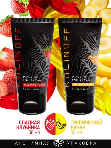 Keywords: edible lubricant, water-based lubricant, banana lubricant, strawberry lubricant, panthenol lubricant, intimate lubricant, sex lubricant, anal lubricant, vaginal lubricant, oral lubricant, couples lubricant, 18+ lubricant, adult lubricant, sex toys lubricant, KALINOFF, hypoallergenic lubricant, safe lubricant, long-lasting lubricant, pleasure lubricant, arousal lubricant, lubricant with flavor, edible sex lubricant, gift set, love box, condoms, sex toys.