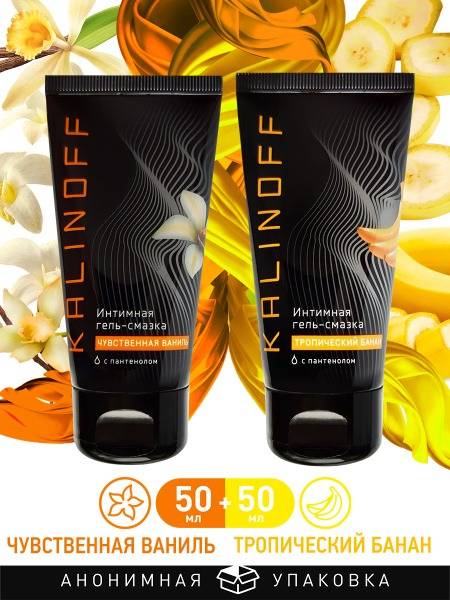 edible lubricant, water-based lubricant, lubricant with panthenol, tropical banana lubricant, vanilla lubricant, oral lubricant, vaginal lubricant, anal lubricant, sex lubricant, couple's lubricant, lubricant for sex toys, hypoallergenic lubricant, silicone-free lubricant, paraben-free lubricant, safe lubricant, pleasure enhancer, intimacy enhancer, sex toys, condoms, KALINOFF, adult products, gift for couples, 18+, discreet shipping.