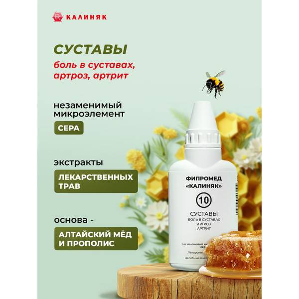 Suffering from joint pain, arthritis, or osteoarthritis? Kaliyak Fipromed No. 10 "Joints" offers a natural and effective solution. This palatable dietary supplement is specially formulated to target the root causes of joint discomfort, providing comprehensive relief and promoting long-term joint health.