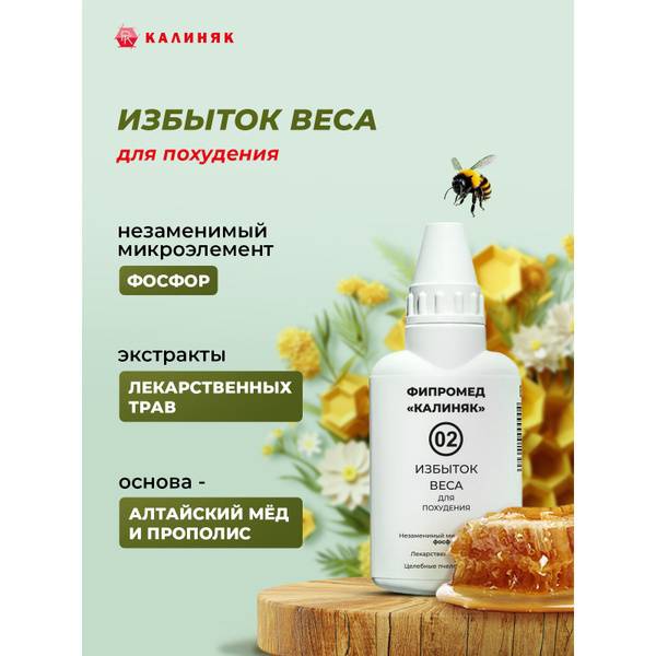 Kaliyak Fipromed #02 "Weight Excess" is a delicious and effective herbal supplement designed to help you achieve your weight loss goals. This 60ml bottle contains a unique blend of phosphorus, medicinal herbs, and beneficial bee products, working synergistically to boost your metabolism and promote healthy weight reduction.