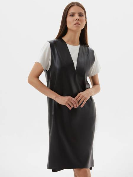 Experience the luxury and comfort of the KANZLER women's eco-leather sundress. Crafted from supple, soft eco-suede leather, this dress offers a luxuriously smooth feel against the skin, mimicking the comfort of genuine leather. Its elegant silhouette flatters every figure, providing both comfort and style. Perfect for autumn and winter, this versatile dress serves as a stylish transitional piece, suitable for fall, winter, or even as a warm demi-season option. The comfortable cut allows for unrestricted movement and wrinkle-free wear, making it ideal for the office, school, or any occasion.