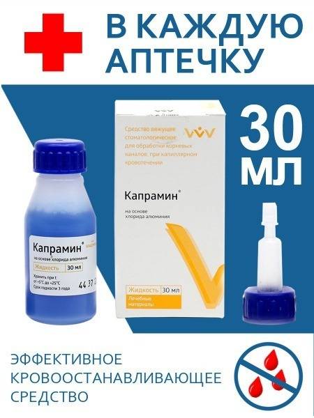 Kapramin, hemostatic, disinfectant, aluminum chloride, bleeding control, dental, dentistry, root canal, gum bleeding, wound care, antiseptic, bactericidal, cetrimide, Racestyptine, Alustat, Hemostatic, Astringedent, first aid, veterinary, manicure, pedicure, cosmetology, ФСР 2010/06810, 30ml