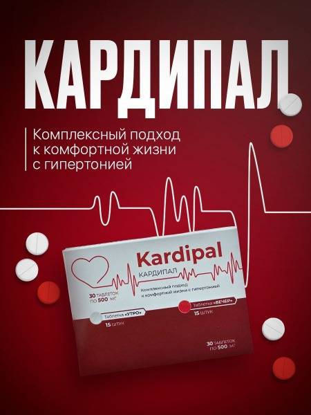 Kardipal is a natural heart and blood vessel support supplement formulated with carefully selected herbs and plants, whose cardiological benefits are supported by modern medical research. High blood pressure affects over 70% of adults, often indicating underlying cardiovascular issues. If you're struggling with hypertension, Kardipal tablets offer a natural approach to improve cardiovascular health, reduce blood pressure, and alleviate symptoms like headaches and dizziness. This comprehensive vitamin complex helps normalize blood pressure, strengthen the cardiovascular system, and reduce the risk of serious complications like heart attack and stroke. Kardipal targets the root causes of hypertension, not just the symptoms, promoting long-term cardiovascular health. Containing only natural microelements and extracts, Kardipal is suitable for long-term use, is non-habit forming, and has minimal contraindications. Simply take one white tablet in the morning and one red tablet in the evening with 100ml of liquid. A 30-day course is recommended. Kardipal is a dietary supplement, not a medication, and is ideal for men and women over 40 seeking to proactively support their cardiovascular health and overall well-being.