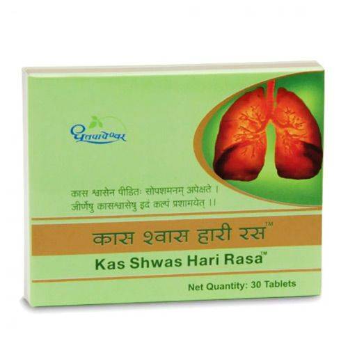 Description: Kas Shwas Hari Rasa Dhootapapeshwar is a potent herbal formulation designed to support respiratory health, particularly addressing conditions like asthma. This unique blend effectively tones the entire bronchopulmonary system, rejuvenating lung and bronchial tissues, and boosting their immune defense. By improving lung capacity and oxygen intake, it significantly alleviates symptoms and may contribute to the healing process in conditions such as asthma, tuberculosis, pneumonia, and bronchitis. Furthermore, Kas Shwas Hari Rasa offers rapid and effective relief from common cold and flu symptoms, including cough, sneezing, rhinitis, sinusitis, tonsillitis, fever, headache, body aches, and fatigue associated with congestion. Its benefits extend to mitigating the effects of migraines and boosting overall immunity. This 30-tablet pack provides a convenient and effective approach to holistic respiratory wellness.