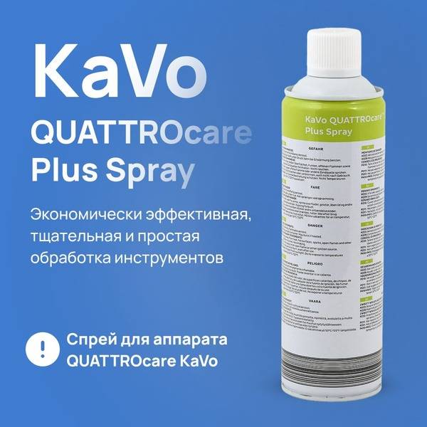 Maintain peak performance of your KaVo instruments with this 500ml spray lubricant, specifically designed for use with the QUATTROcare PLUS cleaning and maintenance system (part # 1.005.4525). This high-quality lubricant and cleaner effectively protects and cleans all KaVo handpieces, turbines, contra-angles, and pneumatic motors. Its targeted spray ensures optimal lubrication and cleaning without the use of harmful CFCs. Made in Germany, ensuring superior quality and reliability.