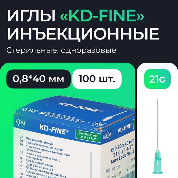 "description": "High-quality KD-Fine 21G (0.8x40mm) injection needles, manufactured in Germany, offer exceptional sharpness and durability for both human and animal applications.",