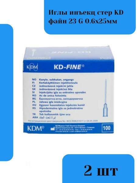 injection needles, 23G needles, 0.6x25mm needles, sterile needles, disposable needles, KD Fine needles, Luer slip, Luer-Lok compatible, intradermal needles, subcutaneous needles, intravenous needles, intramuscular needles, surgical steel needles, single-use needles, medical needles, KD Medical, Germany, 100 pack, blister pack, CE marked