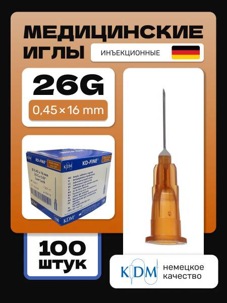 Experience superior injection precision and patient comfort with KD-Fine 26G (0.45x16mm) sterile, single-use injection needles. Manufactured in Germany from ultra-fine surgical steel, these needles ensure painless injections and accurate medication delivery. The KD-Fine needle system's sharp, precise tip minimizes discomfort during injections and infusions. Compatible with Luer-Lok syringes, ensuring a secure connection and effortless operation. Ideal for a wide range of applications, these needles are an essential tool for cosmetologists, healthcare professionals, and medical facilities. Each pack contains 100 individually blister-packed needles, providing ample supply for various procedures. Maintain sterility and ensure safety with individual packaging. Store at room temperature, away from moisture and direct sunlight. Five-year shelf life when stored properly. For single-use only. Upgrade your practice with KD-Fine needles – experience the difference of superior quality and patient comfort.