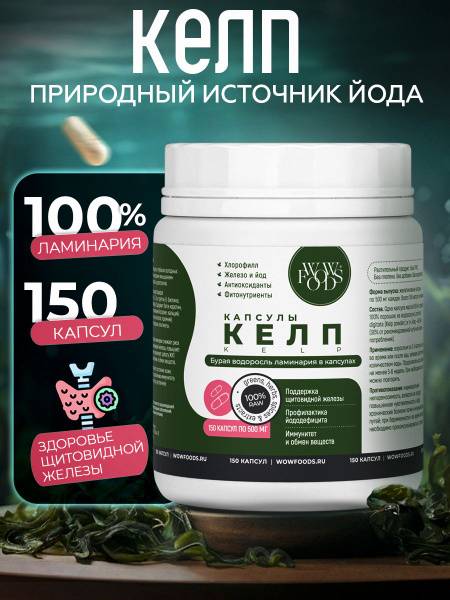 Harness the power of the sea with WOWFOODS Kelp Capsules. Sourced from deep, cold ocean waters, this brown seaweed – known as Laminaria – is revered in Asia as "sea ginseng" for its health-boosting properties. Each capsule delivers a potent blend of naturally occurring iodine (in the form of iodides and iodine compounds), vitamins A, C, E, K, and B vitamins, biotin, pantothenic acid, and folic acid. Enjoy the benefits of kelp's rich mineral profile, including easily absorbed calcium, potassium, sodium, phosphorus, bromine, magnesium, selenium, zinc, iron, silicon, cobalt, copper, and manganese. Kelp's natural alginates support detoxification. This comprehensive supplement may contribute to improved thyroid function, increased hemoglobin levels (helping to prevent anemia), better digestive and lymphatic system function, balanced pH levels, and enhanced metabolism. Experience potential benefits for your cardiovascular health, immune system, weight management, and overall energy levels. Support healthy skin, hair, and nails, and boost your mental and physical performance. Get your daily dose of ocean-powered wellness with WOWFOODS Kelp Capsules.