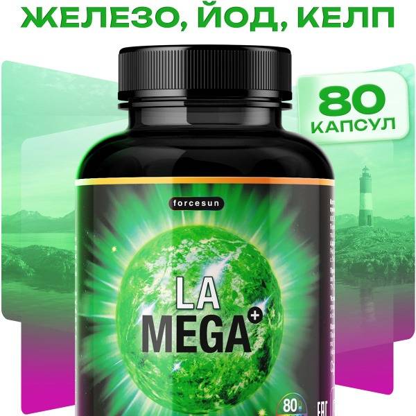 Support your thyroid health and metabolism with LAMEGA+ Forcesun Kelp supplement. Each bottle contains 80 capsules, each packed with 700mg of kelp (Laminaria), a powerhouse of natural iodine, iron, and chlorophyll. Iodine is crucial for optimal thyroid function, while iron supports healthy red blood cell production and energy levels. Chlorophyll contributes to a robust immune system. LAMEGA+ helps improve metabolism, strengthen bones and nerves, detoxify the body, and may reduce the risk of heart disease. Ideal for thyroid health support and seasonal wellness, experience increased energy and vitality after a course of LAMEGA+.