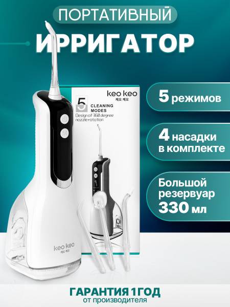 portable water flosser, cordless water flosser, water flosser, oral irrigator, dental irrigator, Keo Keo, L12-02, plaque removal, gum health, gingivitis, periodontitis, braces, implants, travel water flosser, teeth whitening, 4 nozzles, 5 modes, 330ml tank, oral hygiene, healthy gums, cavity prevention, pregnancy oral care, smokers oral care.