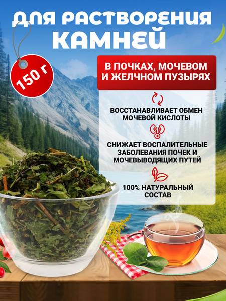 Description: This effective Altai herbal blend supports kidney and gallbladder health. Formulated with burdock, horsetail, rosehip, and goldenrod, it helps combat kidney stones, gallstones, bladder stones, painful urination, and urinary tract infections. It aids in dissolving kidney stones (urate, oxalate, urate-oxalate lithiasis), improves glomerular filtration, increases diuresis, and prevents further stone formation. This diuretic tea, based on traditional recipes and modern phytotherapy, promotes the natural elimination of waste, reduces inflammation, and possesses antiseptic, anti-inflammatory, wound-healing, and spasmolytic properties. Safe and effective for promoting urinary tract health. 150g, Certified.