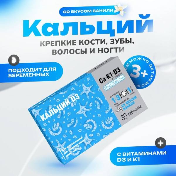 Support your family's bone health and overall well-being with our delicious vanilla-flavored Calcium D3 chewable tablets. Formulated for children aged 3 and up, as well as adults (including pregnant women), this synergistic blend of Calcium, Vitamin D3, and Vitamin K1 promotes optimal calcium absorption. Regular intake helps: