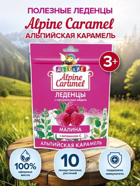 Alpine Caramel raspberry lozenges, crafted with natural essential oils from Carmolys, offer a delicious and wholesome treat for children aged 3+. These lozenges combine the goodness of natural honey and Vitamin C with a unique blend of certified Carmol oil – a complex of essential oils from 10 medicinal herbs, using a time-tested recipe and traditional production methods. The active components in the essential oil complex help boost the body's resistance to infections, offering soothing relief from cold symptoms, coughs, and sore throats through their antimicrobial, antiviral, and immune-boosting properties. Vitamin C further supports the immune system. The essential oils also promote phlegm expulsion, stimulate digestion, and gently harmonize the nervous system. Added menthol provides soothing relief for breathing and discomfort in the throat and upper respiratory tract. The natural raspberry flavor and honey make these lozenges both beneficial and delightful. Each lozenge is individually wrapped for convenient portability. Perfect for on-the-go relief and immune support for your little ones.