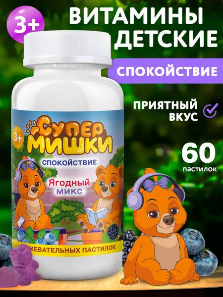 SuperMishki Calm gently supports the nervous system without causing drowsiness or dependence. The delicious berry flavor makes taking vitamins a treat, not a chore! These multivitamins contribute to overall health and are suitable for children aged 3 and up (consult a physician for children under 7).