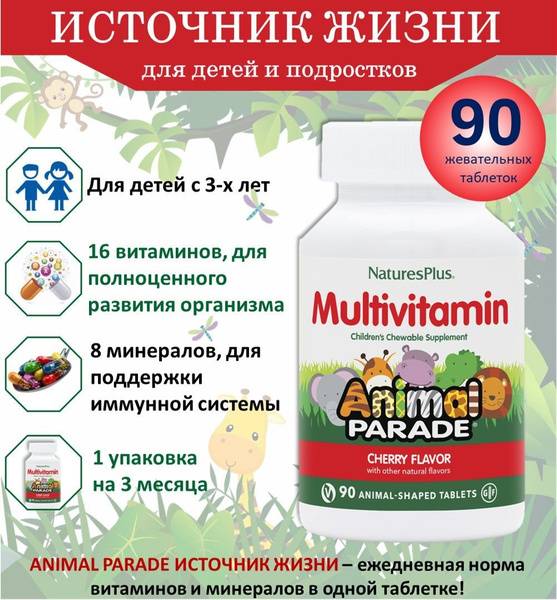 Animal Parade, from Nature's Plus (USA), a 50-year leader in health and wellness, offers a top-5 globally recognized range of children's supplements recommended by pediatricians worldwide. These delicious cherry-flavored chewable vitamins are shaped like adorable animals, making healthy habits fun for kids. Each tablet packs 16 essential vitamins and 8 minerals, plus wholesome ingredients like broccoli and spinach, ensuring comprehensive nutritional support for growing bodies. Boost your child's immune system, bone and tooth health with this complete formula, including crucial Vitamin D3 – often deficient in children. Animal Parade chewables are free from artificial colors, preservatives, common allergens, yeast, wheat, and soy. 100% vegetarian. Give your child the gift of healthy growth and a happy smile with Animal Parade!