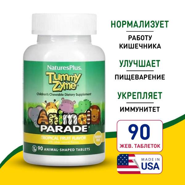 Title: Nature's Plus Animal Parade Tummy Zyme Chewables: Tropical Fruit Flavored Digestive Enzymes & Probiotics for Kids (90 Chewable Tablets)