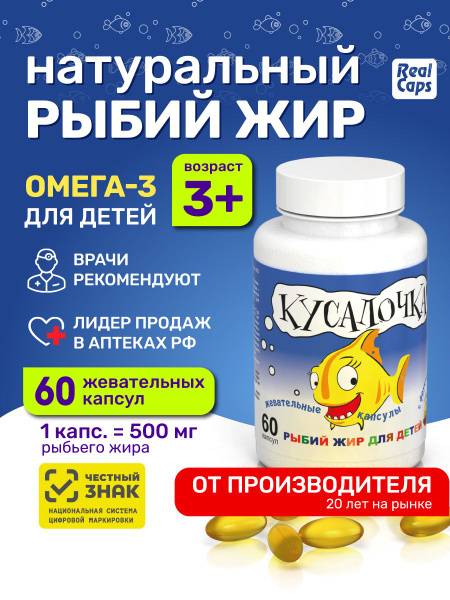 Fish Oil "KUSALOCHKA" 60 Chewable Capsules 500 mg, RealCaps